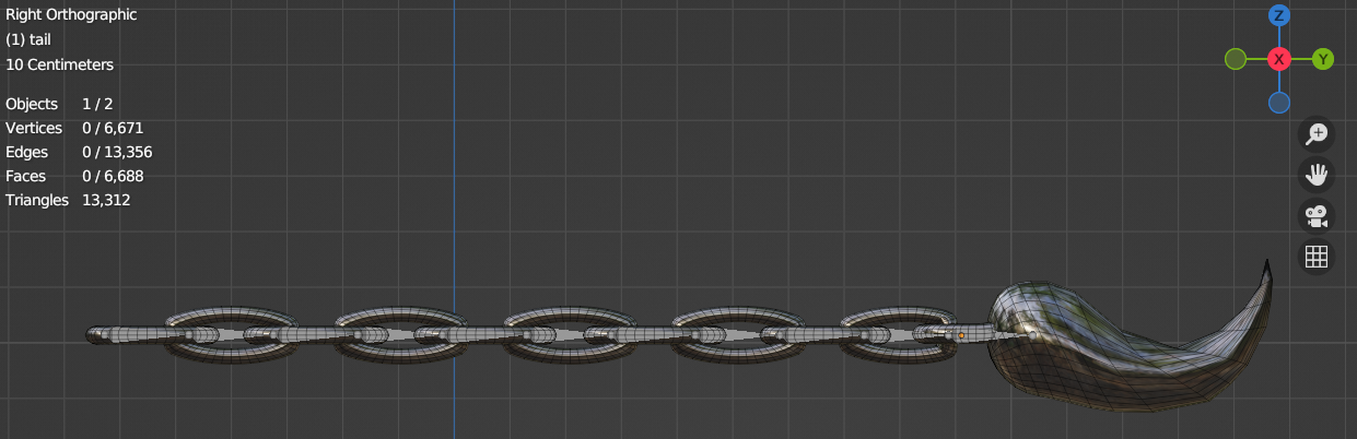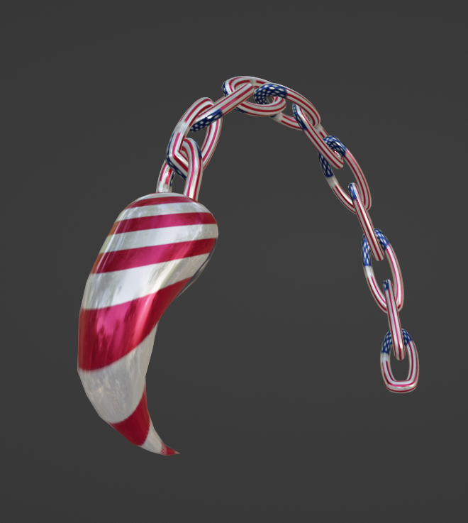 hello what your currently looking at is a made from scratch chain tail, only 13,312 polys rigged and ready to go with 2k metal textures and this tail was built in mind for you to be able to texture it out as you please, as you can see the American flag version as an example